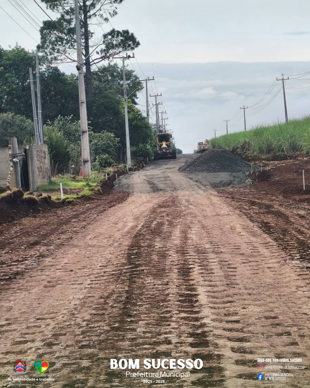 Onde antes havia poeira e barro, agora nasce o progresso. Graças a uma gestão técnica e integrada entre o Governo do Estado e a Prefeitura de Bom Sucesso, as obras de pavimentação na Estrada Rural da Vila Rural já são realidade!